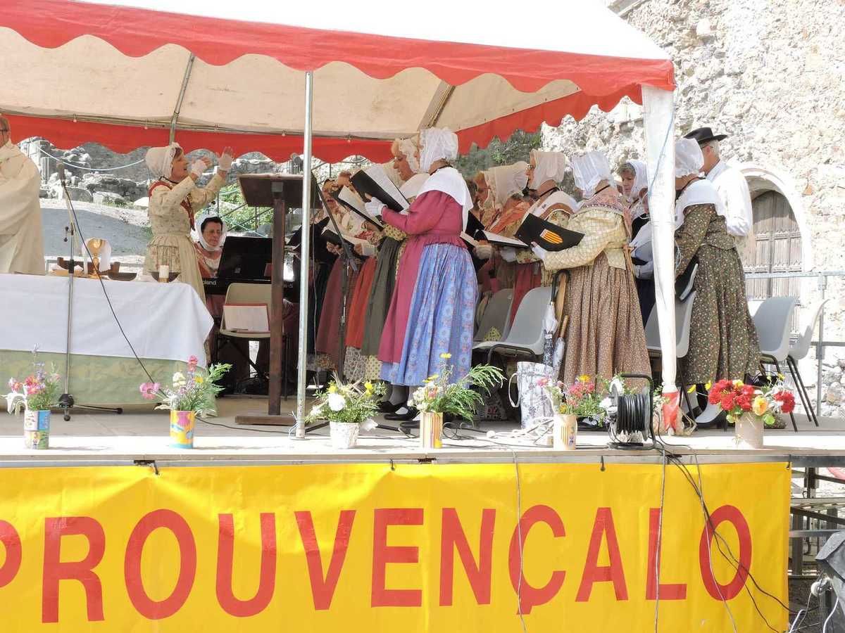 Sur la scène, le groupe de Chants du Raioulet de Sièis Four se met en place