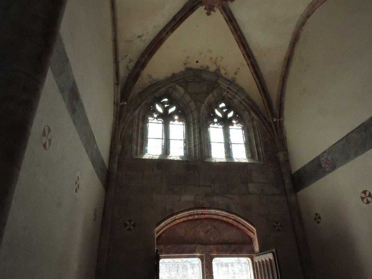 La chapelle Saint Jean est presque entière, en un coin on peut voir les fenêtres qui permettaient d'assister à la messe sans venir dans la chapelle.