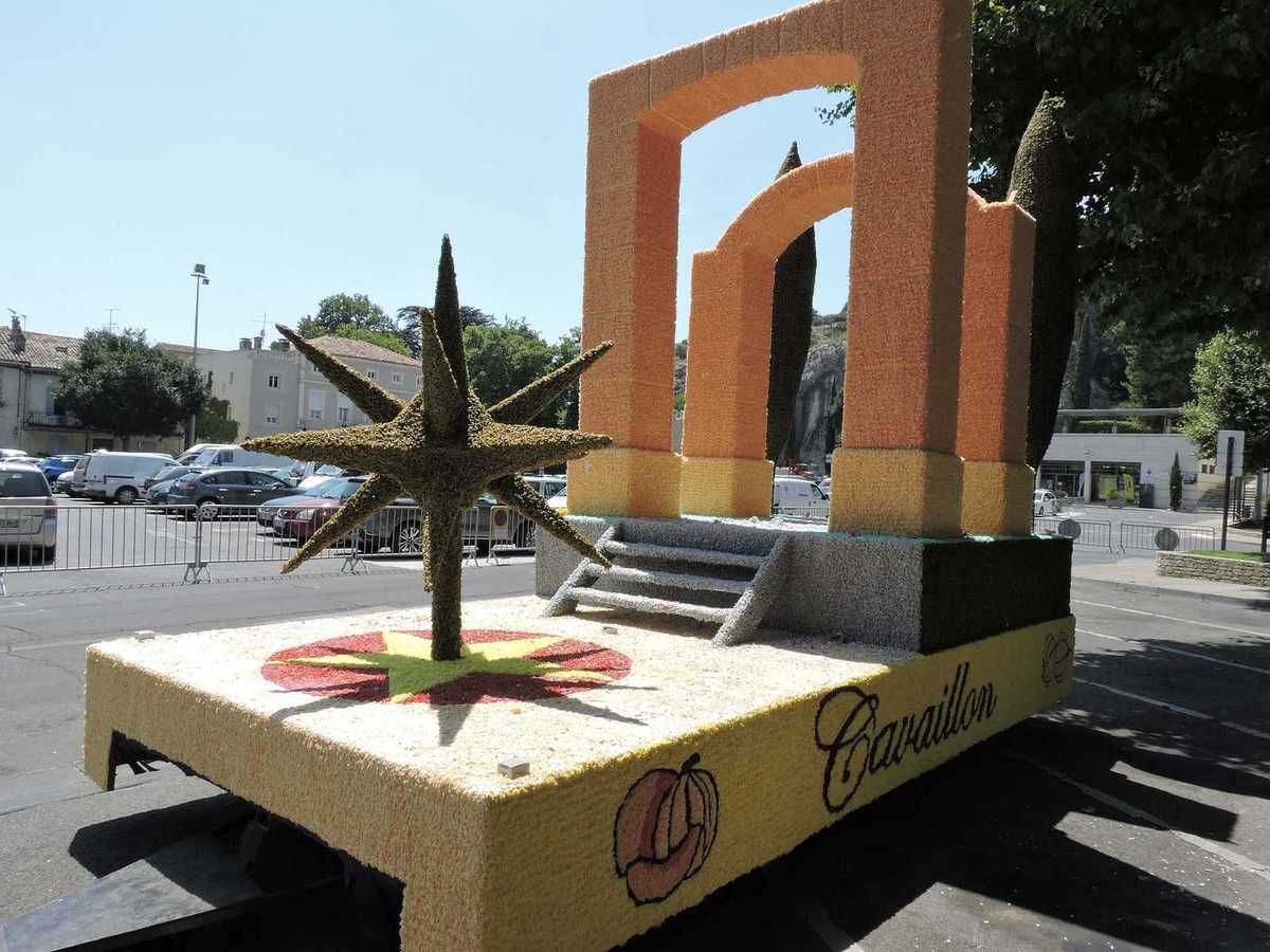 Toujours sur cette place du Clos, à l'occasion de cette fête du melon, les deux chars Cavaillonnais créés par le comité des fêtes pour le 84ème Corso, des chars superbes et un travail gigantesque