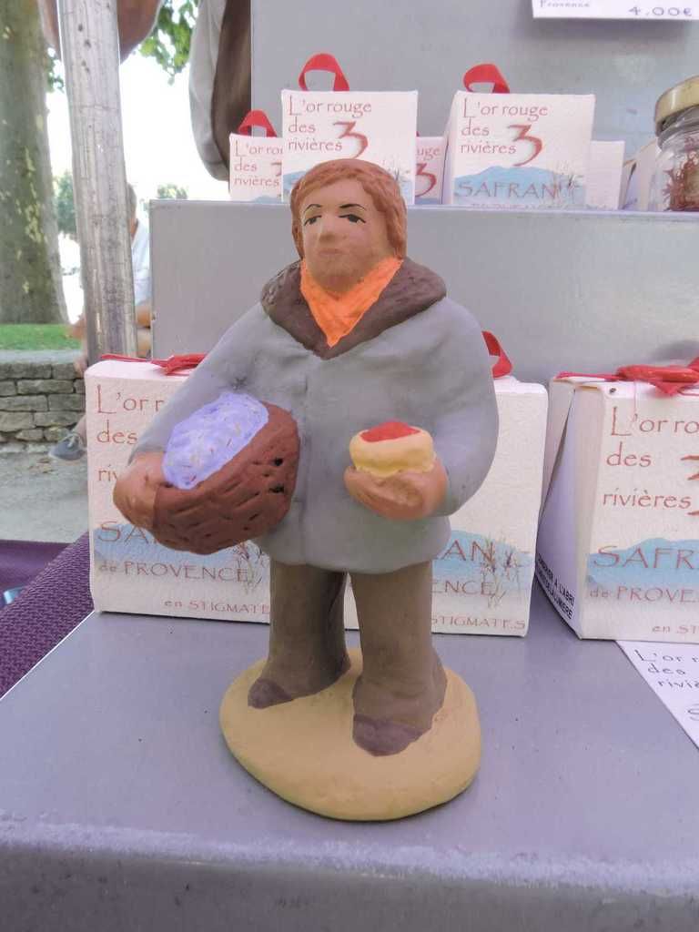 Mais aussi car il possède un santon sur son étal, une œuvre unique qui le représente dans son travail, une œuvre du santonnier Denis Vœux de Séguret.