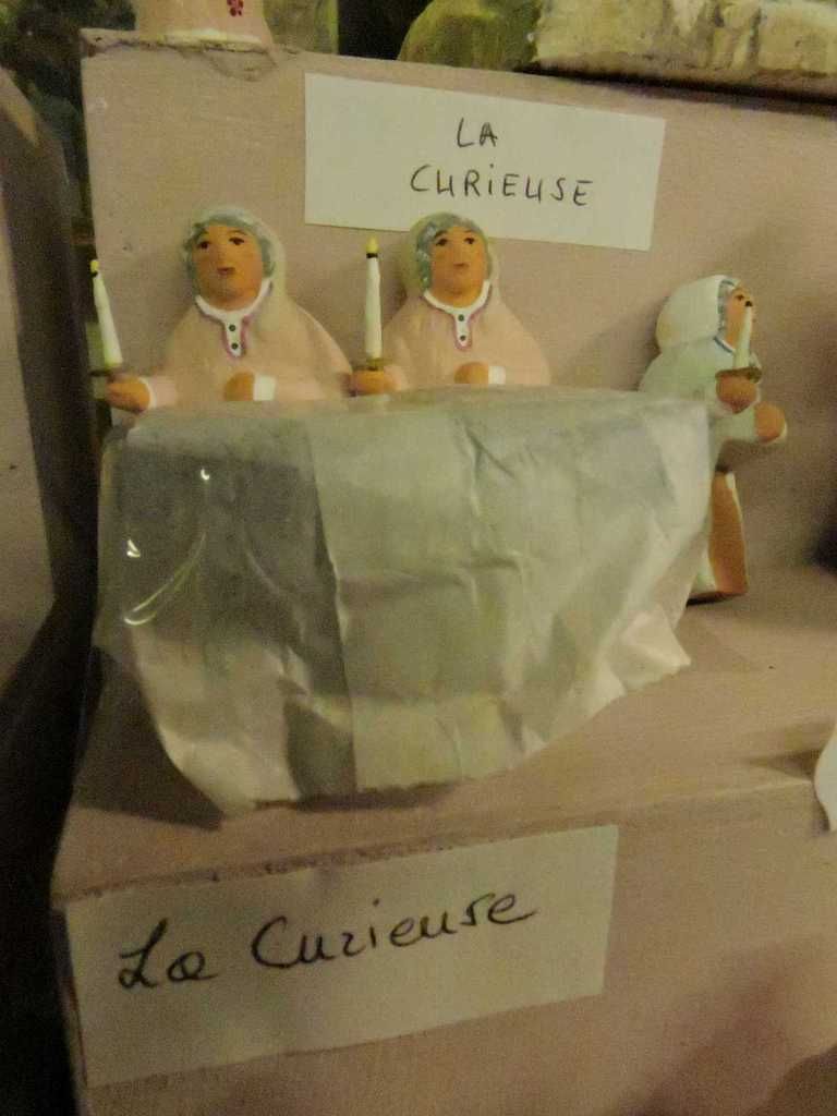 Une nouveauté amusante cette année, la "curieuse" déclinée en santon à mettre à la fenêtre ou derrière une table, une femme avec bougie qui scrute ce qui se passe aux environs
