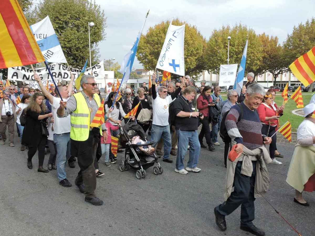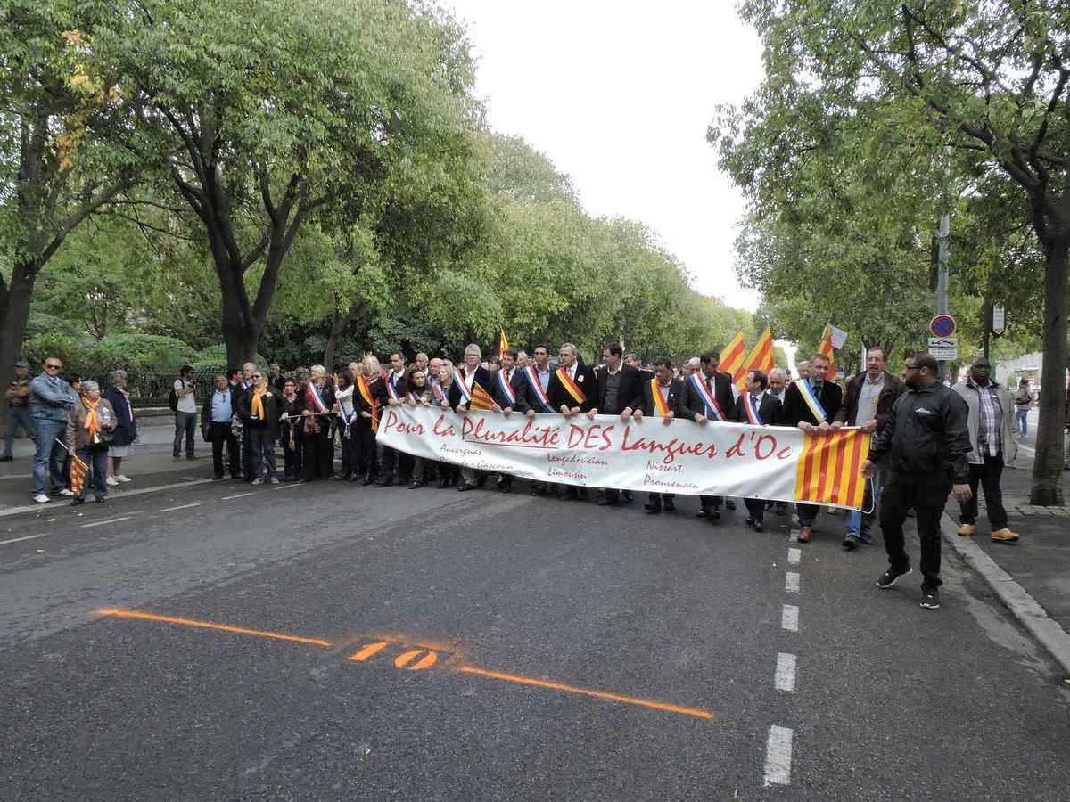 Une manifestation à Montpellier pour la défense d'une Occitanie unique et appelait dans une seule langue qui se veut hégémonique, l'Occitan à graphie dite classique, une langue qui viendrait des troubadours.
