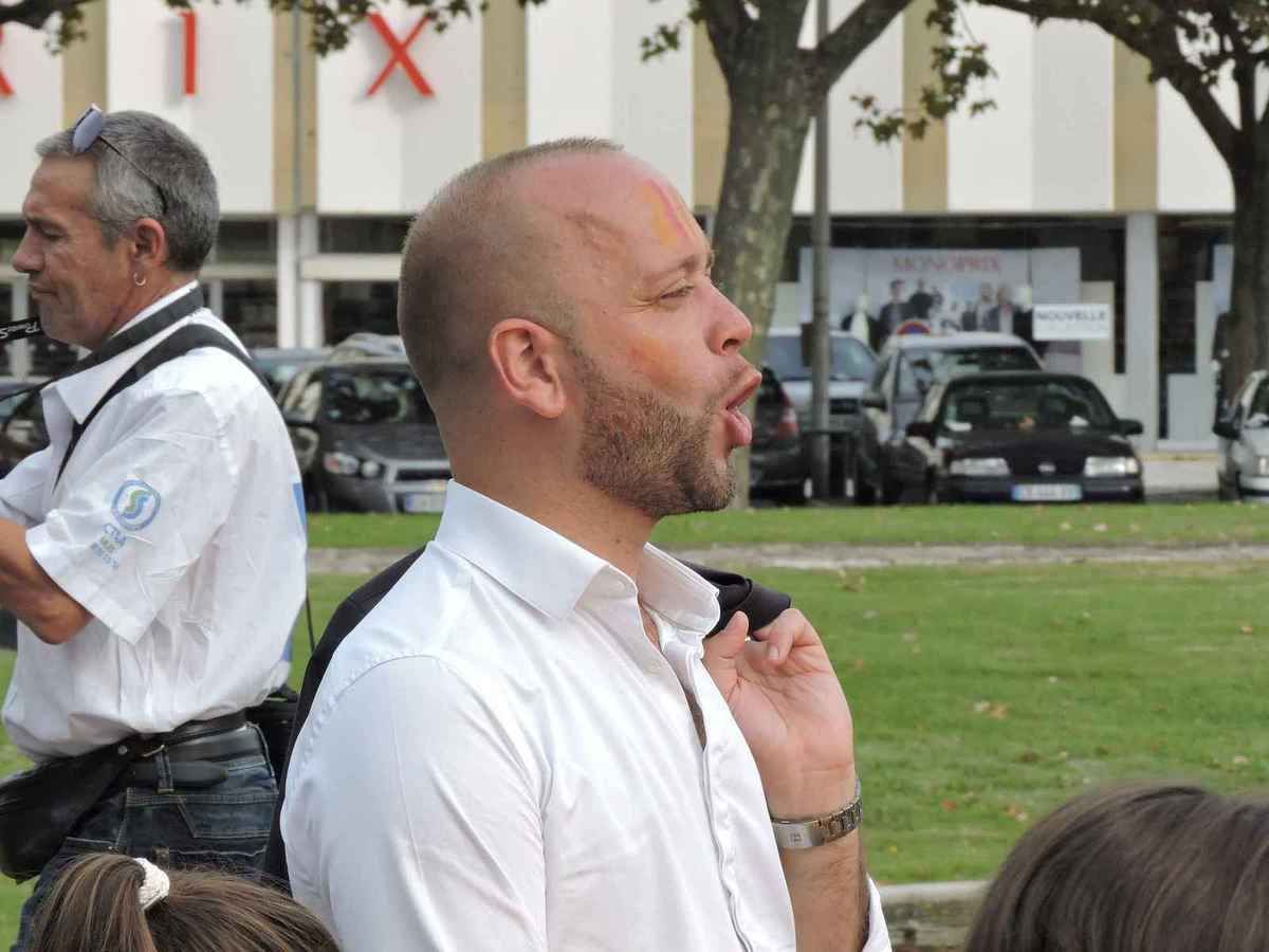 La foule arrive et des drapeaux et des autocollants sont vendus par les organisateurs. Les musiciens sont nombreux. Et les élus locaux sont aussi là, très très nombreux.