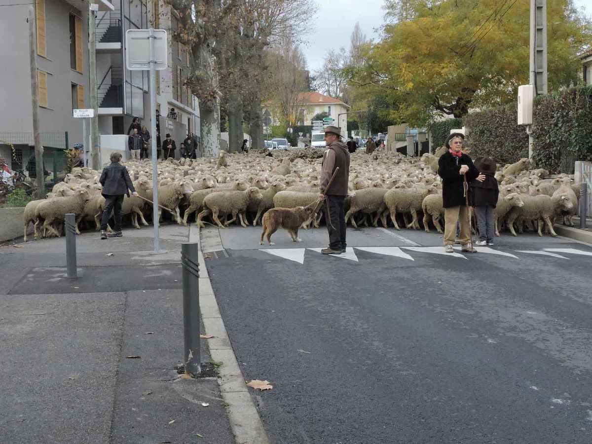 Après ce défilé de plus d'une heure, c'est dire la richesse de cette fête, voilà les moutons qui se présentent. Ils sont d'abord retenus par les bergers, petits et grands et quelques chiens. Il y a un troupeau de plus de 2300 moutons et une quarantaine de chèvre de Rove.