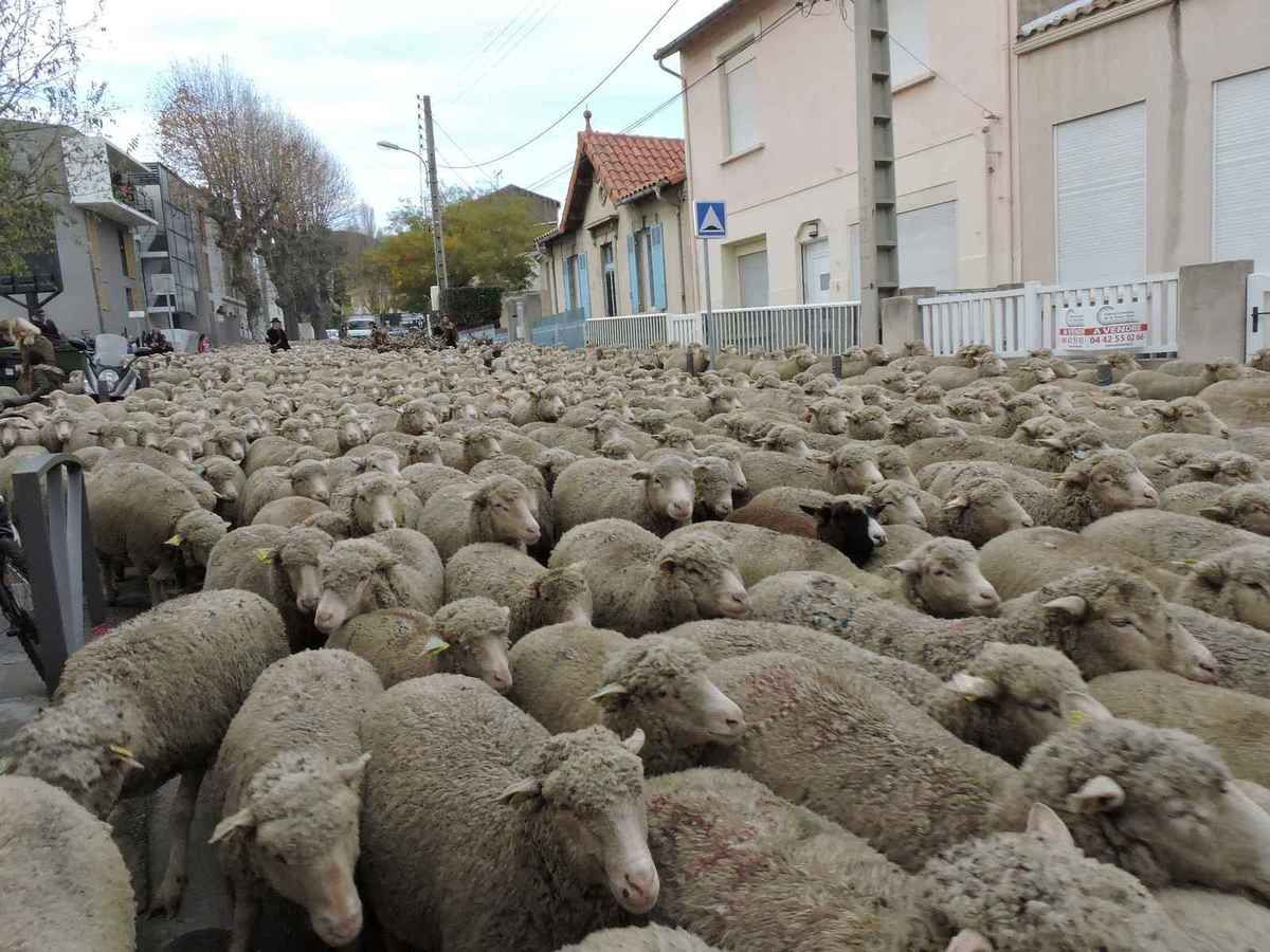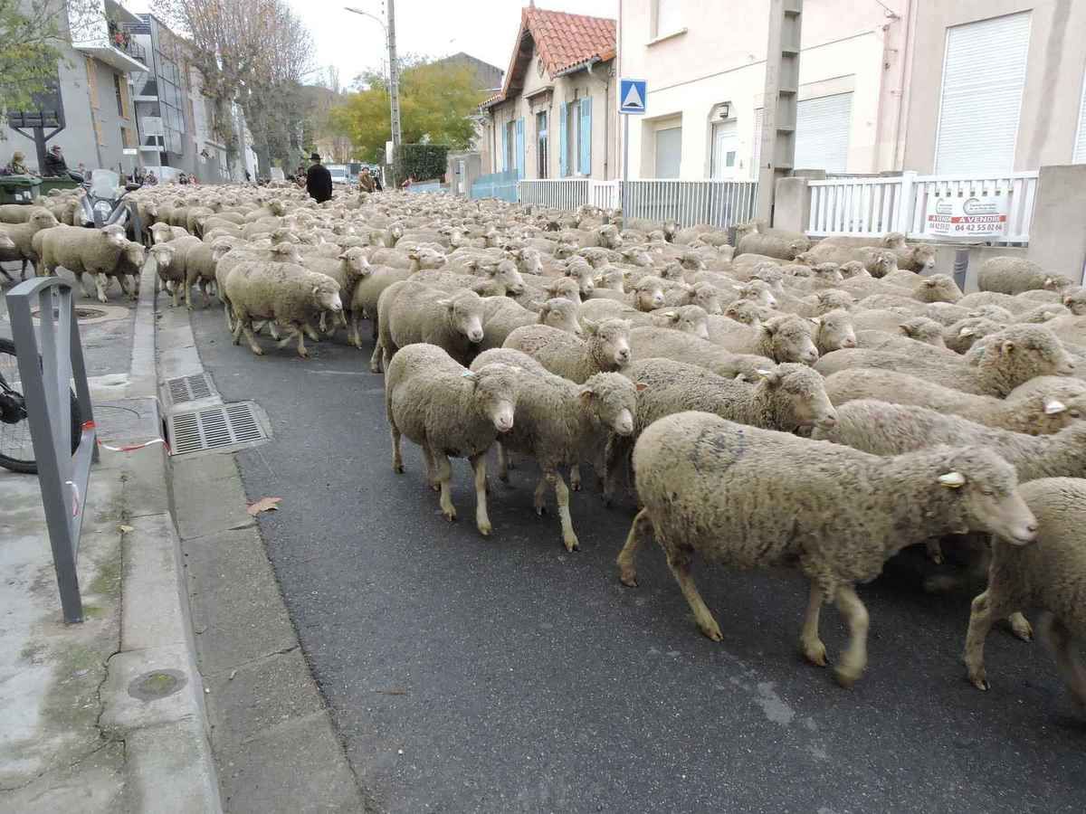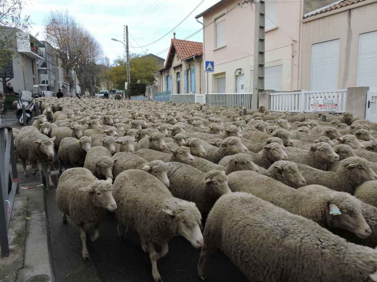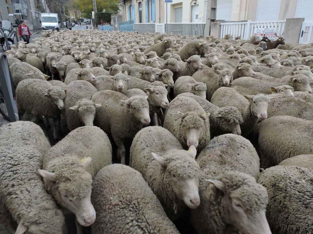 Des moutons occupent les rues, couverts de leur laine, des bergers les encadrent et tout ce troupeau suit le berger aux moutons qui précède cette transhumance suivi du flouca, cette brebis décorée qui permet de repérer l'avancée du troupeau.
