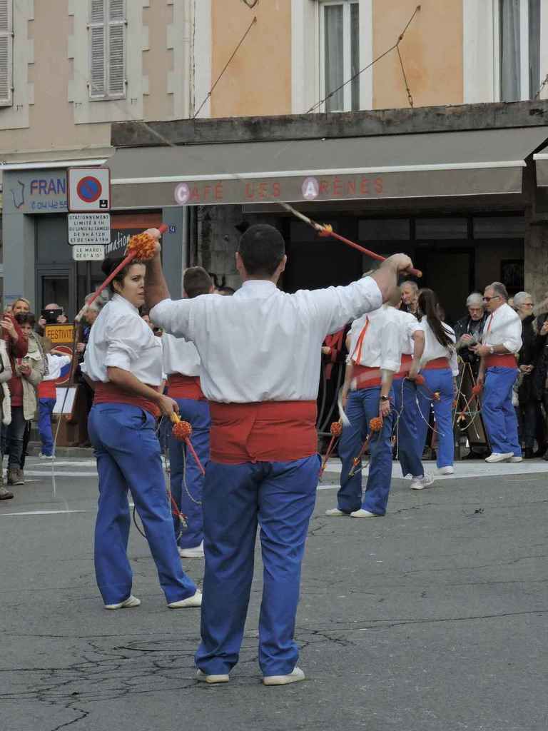 Les fouetteurs de St Rémy, suivis du groupe Condor et de charrettes