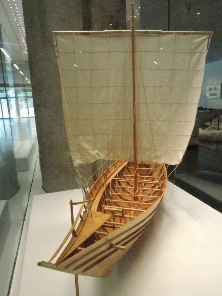 Le premier bateau exposé est une épave du 6ème siècle avant JC, un caboteur de 14 m par 3, certainement construit à Marseille, à voile et pouvant transporter 12 tonnes de marchandises.