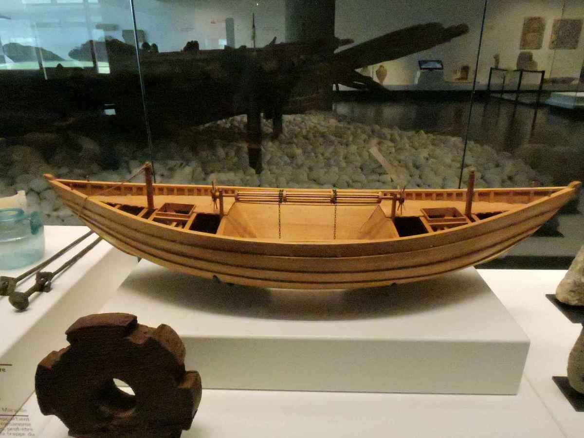 Un autre bateau présenté est un navire marchand romain du 2ème siècle après JC.