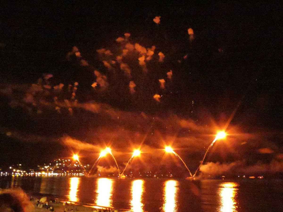 Après cette belle visite, nous partons sur la plage des Lecques pour manger sur la terrasse de la Patouille, un très bon restaurant et profiter de notre position en hauteur pour assister au feu d'artifice annuel du 15 Août, surtout que ce jour-là il n'est pas annulé, le mistral nous laisse tranquille.