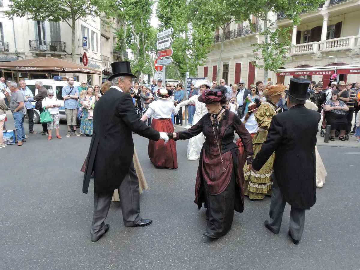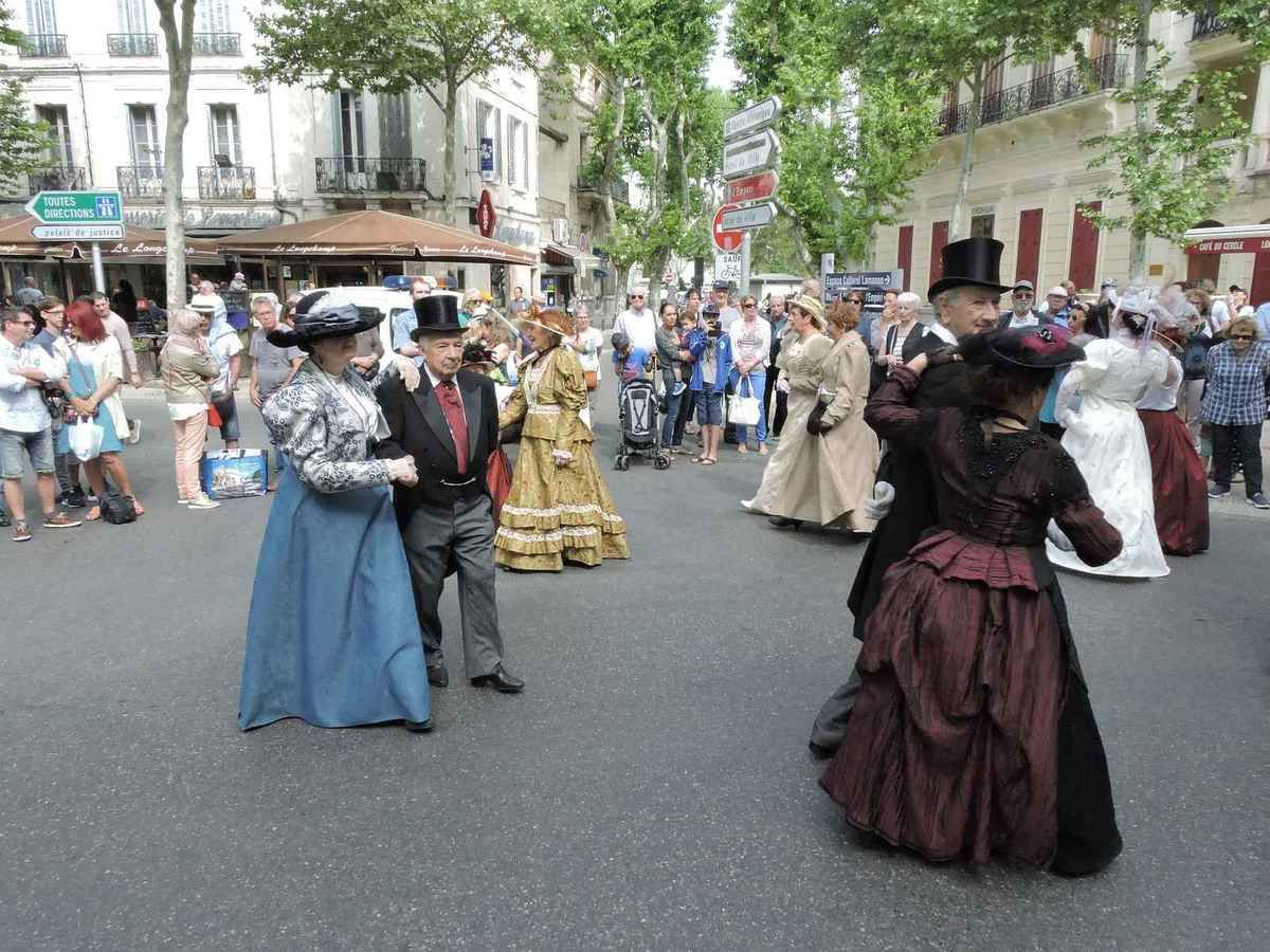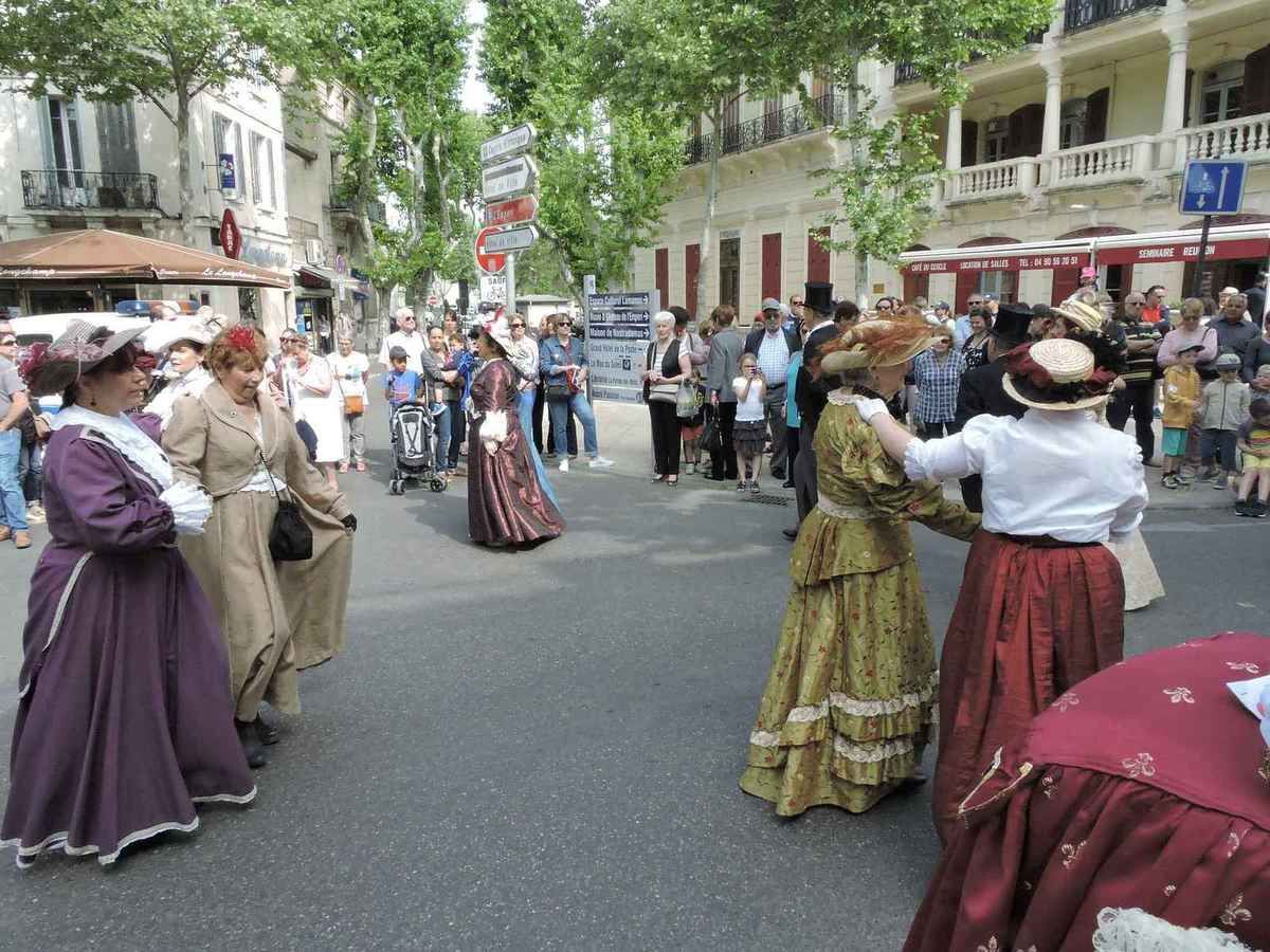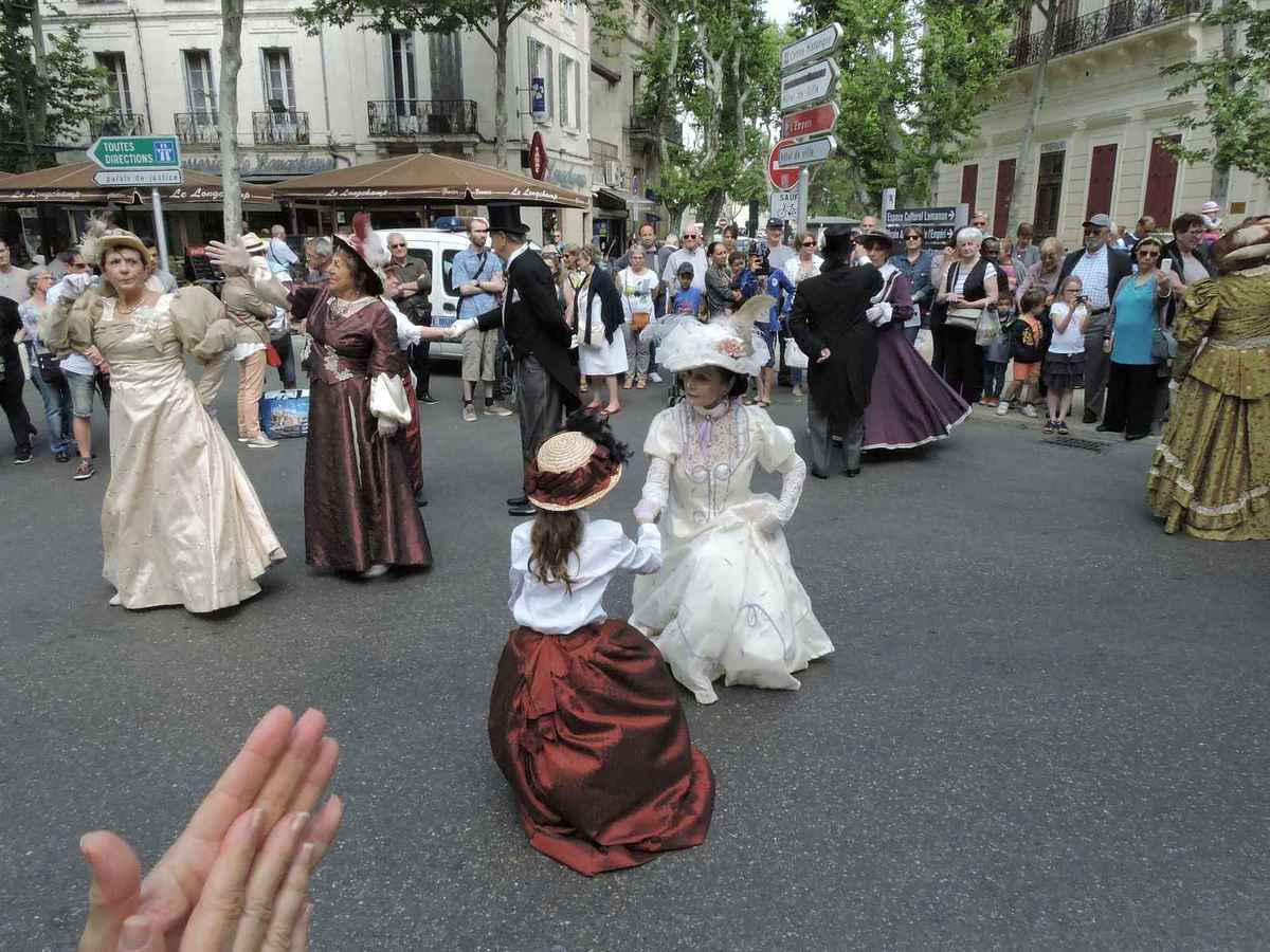 Sur le boulevard circulaire, en attendant le défilé et la transhumance, l'association "Danses de Cour Royale" de Pélissanne assure le spectacle.