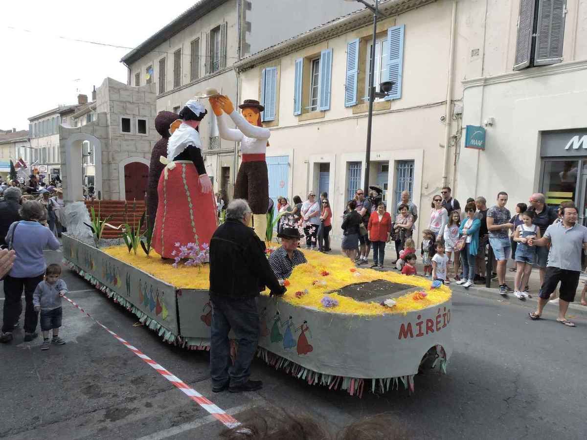 Les charrettes et les chars se mettent en place, deux chars du corso fleuri de Pélissanne sont venus.