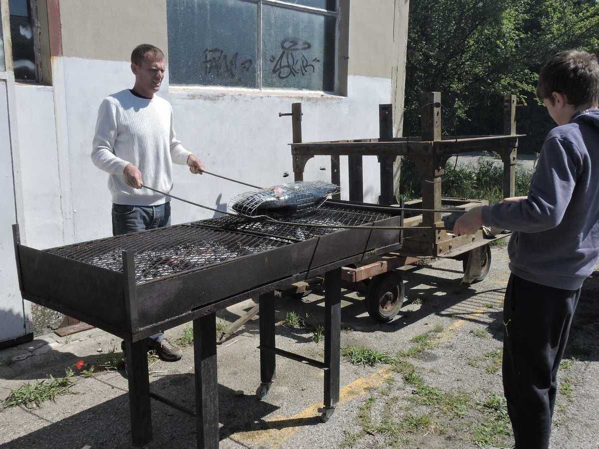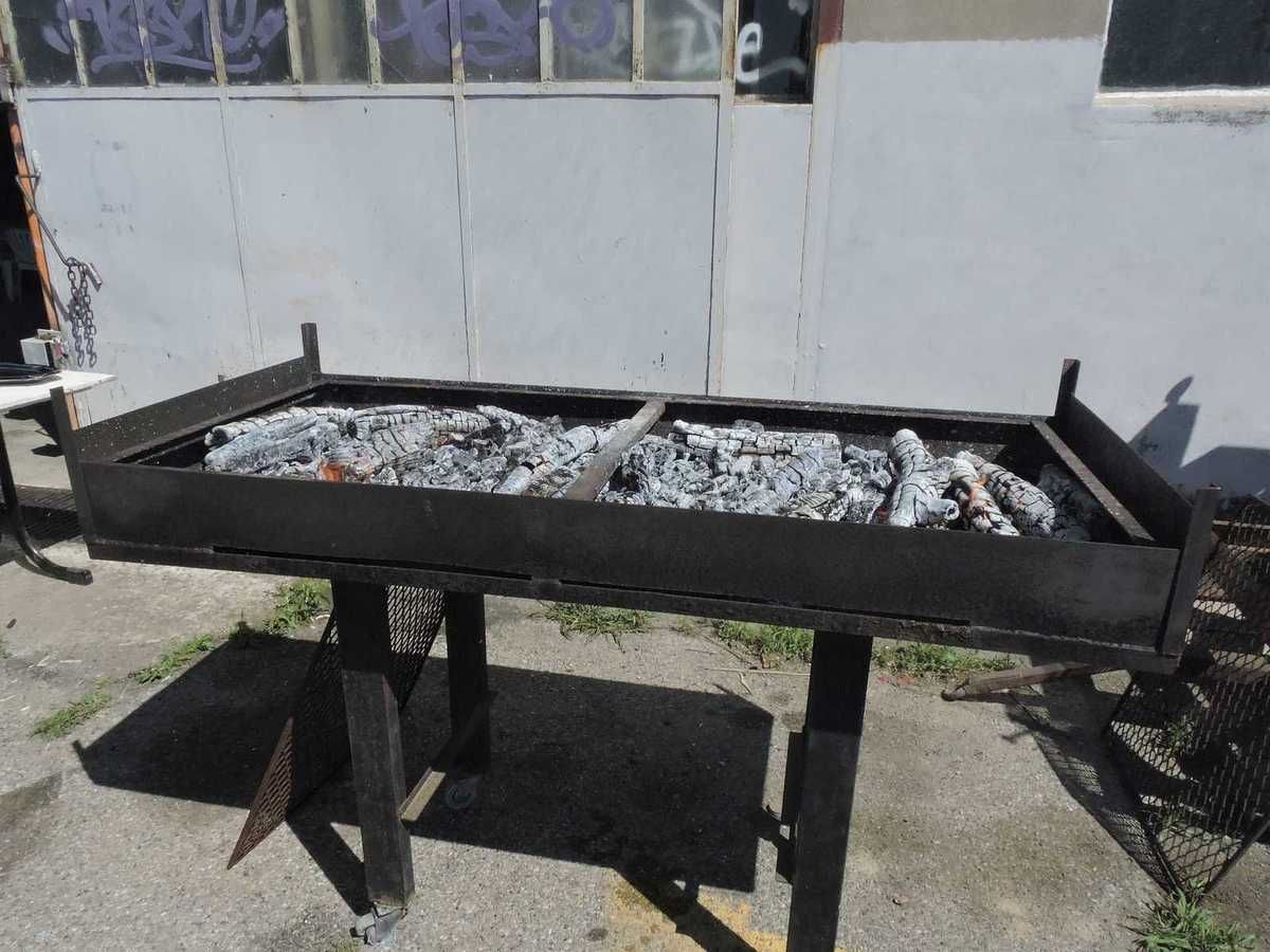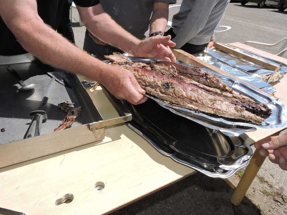 De l'autre côté de la cour, le plus à l'abri du mistral qui souffle fort déjà, les barbecues sont en chauffe, l'un pour la cuisson, l'autre pour continuer de créer des braises…Toute une organisation pensée…