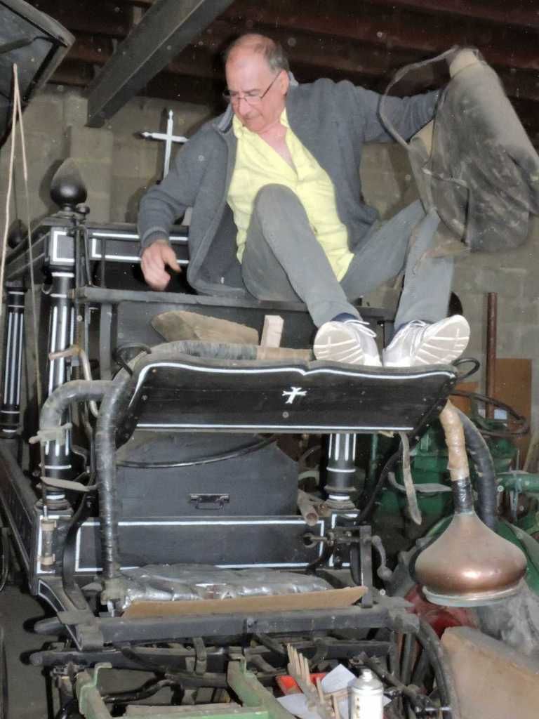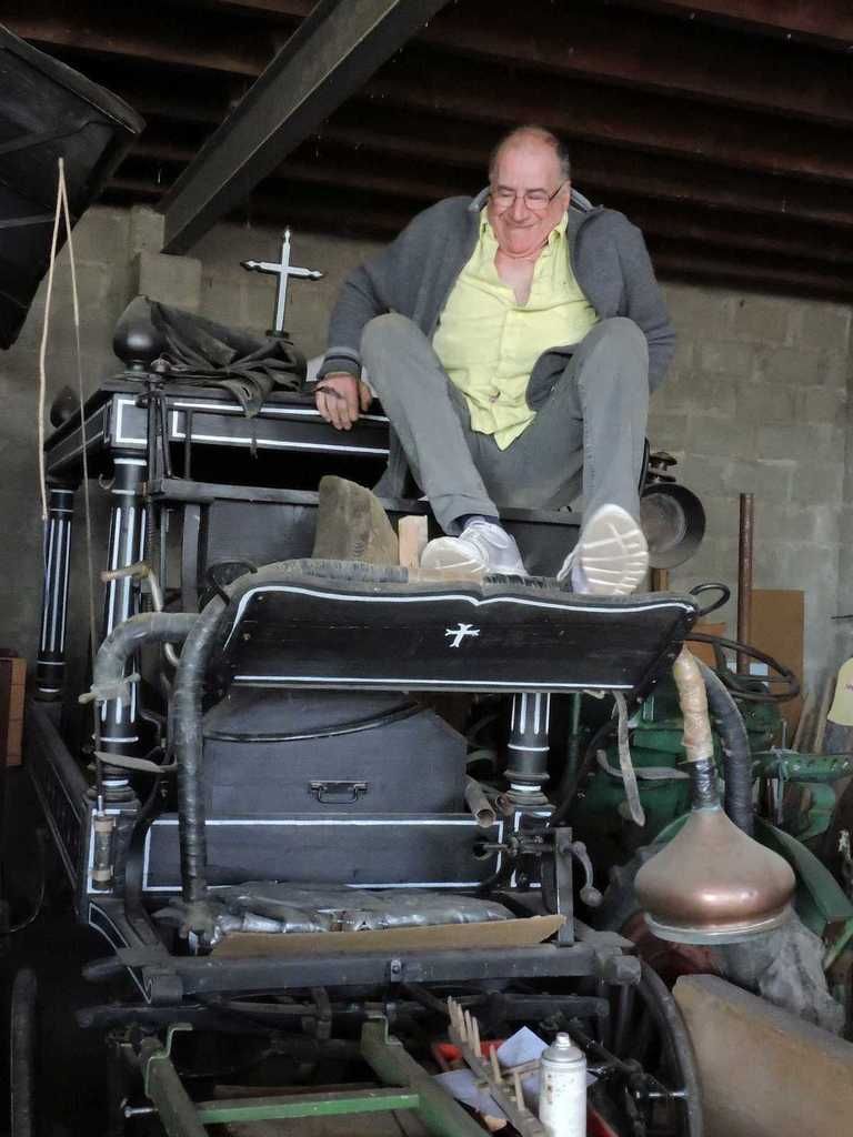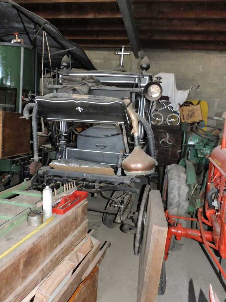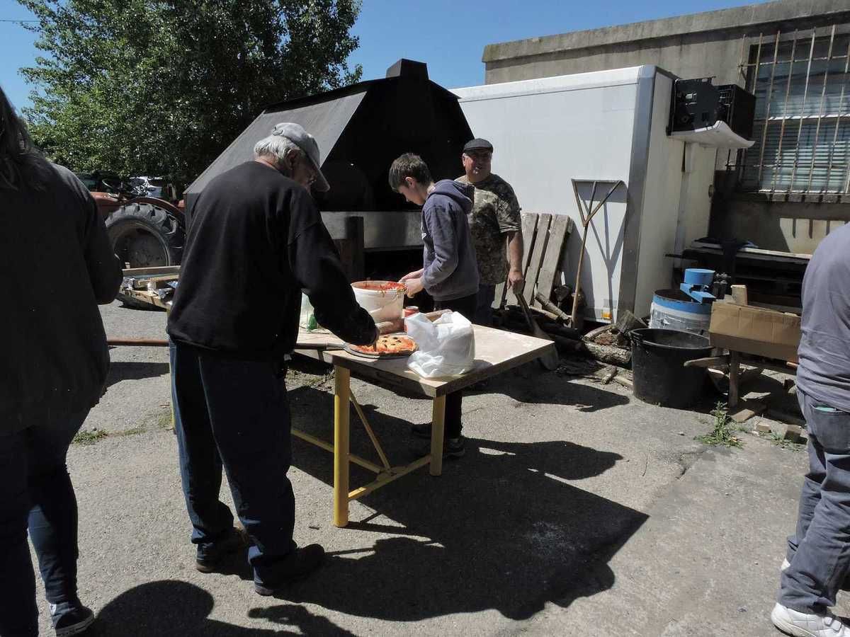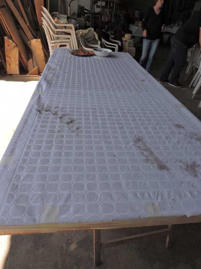 C'est dans la remise où sont rangées toutes les machines anciennes qui servent à cette fête, mais à bien d'autres fêtes aussi, que s'est déroulée cette grande tablée réunissant plus de 30 personnes.