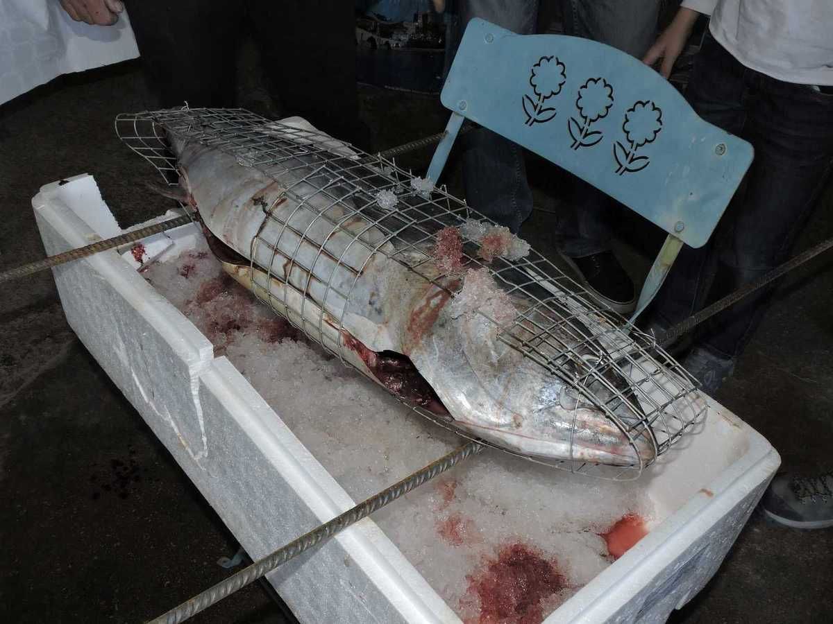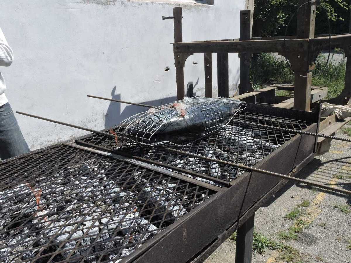 Et ce sont deux énormes thons qui vont venir s'y cuire en moins d'une heure, dans leurs peaux qui disparaîtront à la découpe