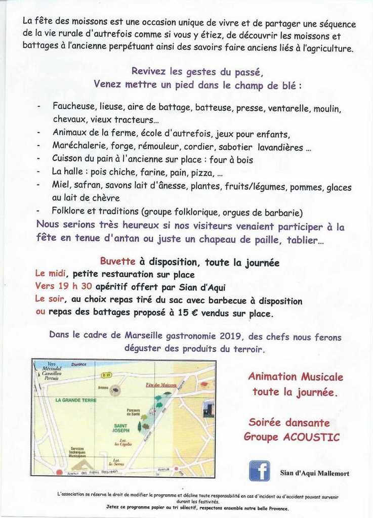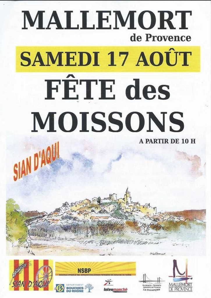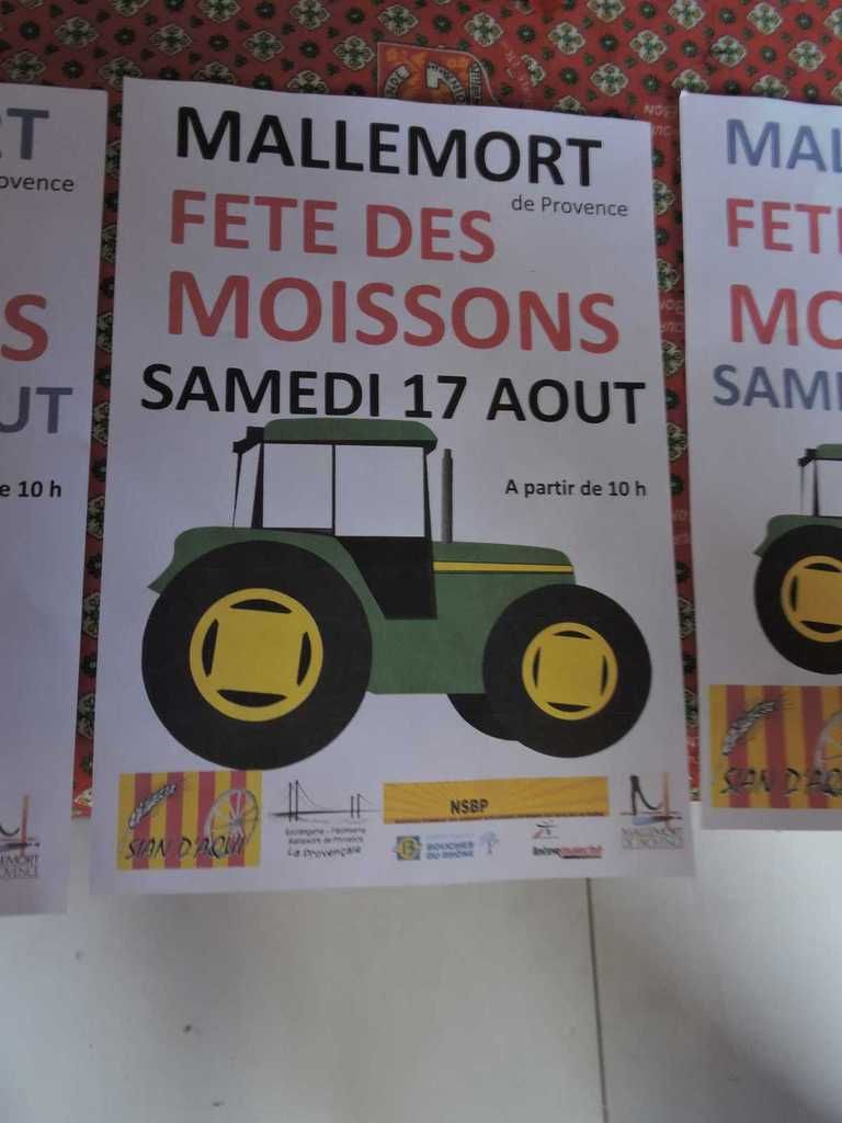 Bon soyons sérieux, la Fête des Moissons 2019 aura lieu le 17 Août à Mallemort, avec comme d'habitude des dizaines de stands autour des moissons, mais aussi des nombreux jeux pour les enfants, et puis buvettes et restaurations assurées pour finir le soir par un concert gratuit assuré par le groupe Acoustic
